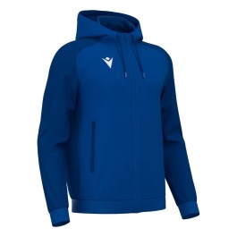 Niebieska męska bluza sportowa Macron Chronos z kapturem, rozpinana na zamek błyskawiczny.